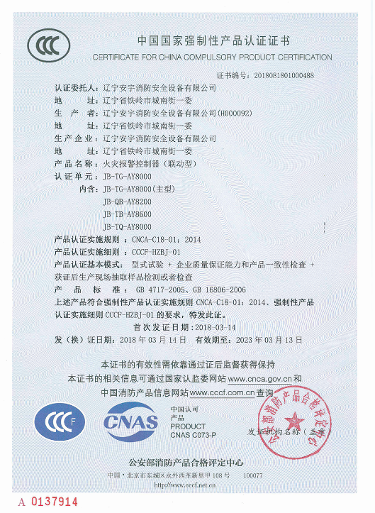JB-TB-AY8600型火災報警控製器(qì)(聯動型)可與本公司生產的AY8000係列產品(pǐn)配套使用,